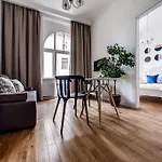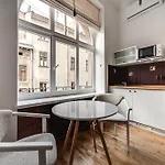 Het appartement biedt een balkon en een zitruimte, en is uitgerust met airconditioning, evenals moderne voorzieningen zoals een flatscreen TV met satellietzenders. Bovendien heeft deze accommodatie parketvloer en is ingericht met geluiddichte ramen. Er worden bedden met veren kussens, hypoallergene donzen kussens en hypoallergische kussens verstrekt. Er is een badkamer met een apart toilet en een douche, tevens zijn er een haardroger en handdoeken.